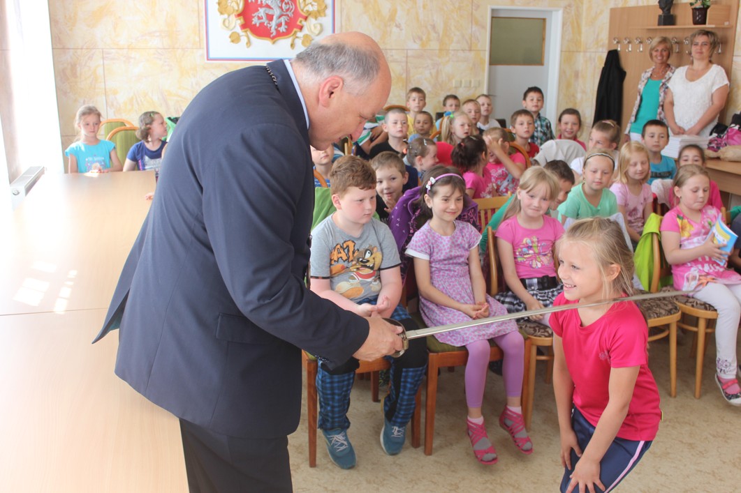 Pasování prvňáčků na čtenáře Ve středu 17. června proběhlo v zasedací místnosti městecké radnice ve spolupráci s městskou knihovnou pasování prvňáčků na čtenáře.