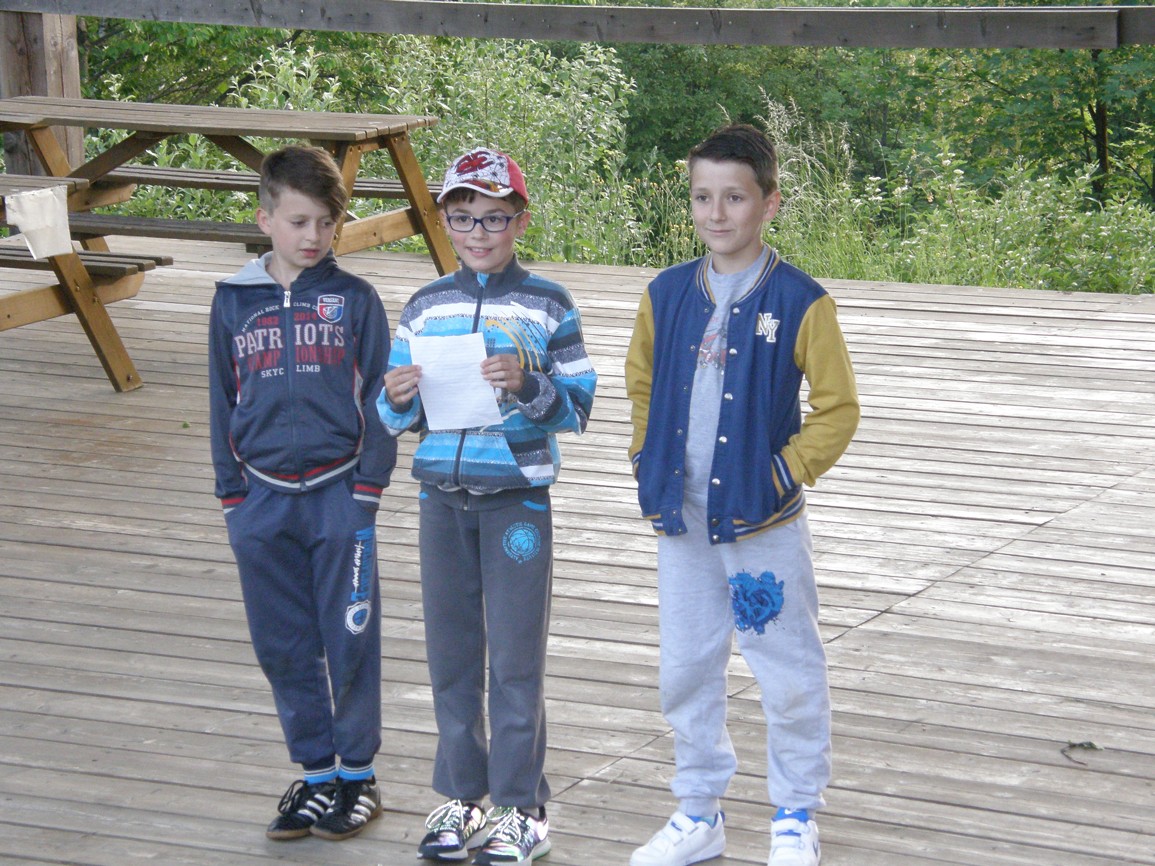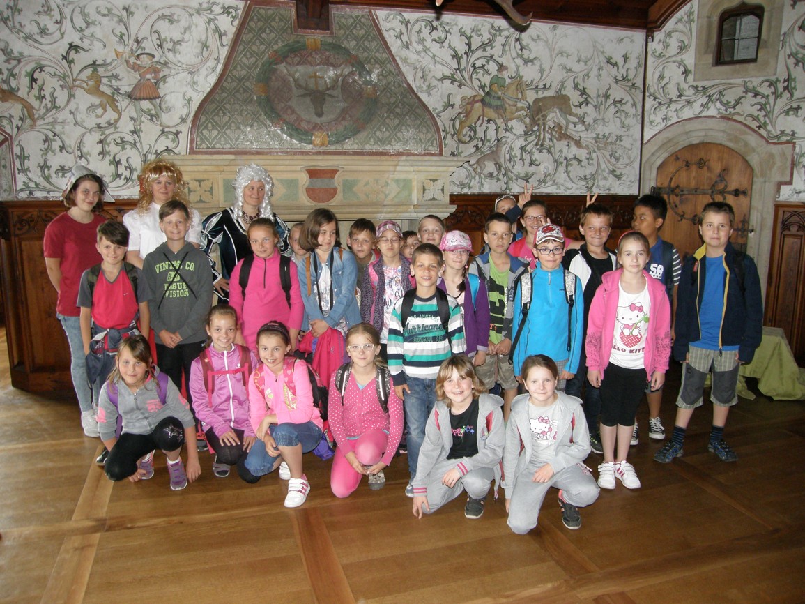 V 6 hodin byl odjezd z Městce. Po cestě jsme v autobuse zpívali Beskyde, Beskyde. Na hradě Bouzov jsme měli hezkou prohlídku s Večerníčkem. Potom jsme dojeli do hotelu. Mají tady dobré jídlo. Byli jsme na hřišti. Děkujeme paním učitelkám a panu řidiči, že nás v pořádku dovezli. Doufáme, že jim trpělivost s námi vydrží po celou dobu pobytu.