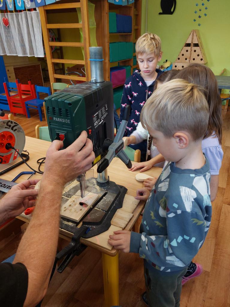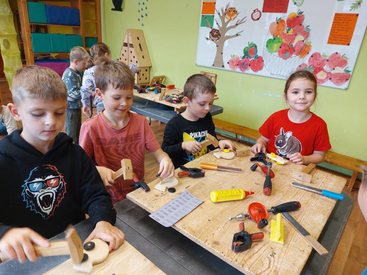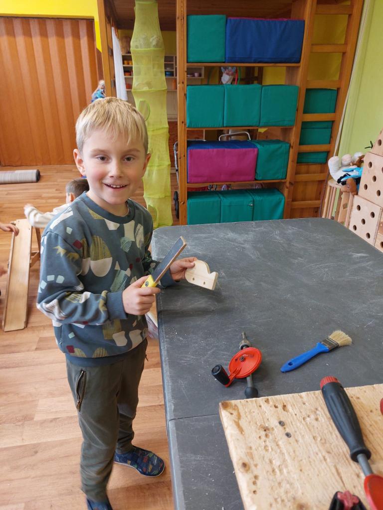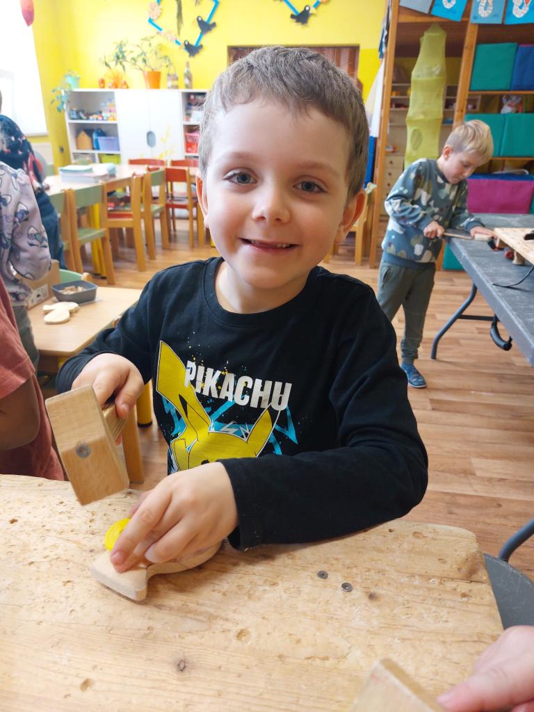 Naši nejmenší zkusili krásnou práci se dřevem.