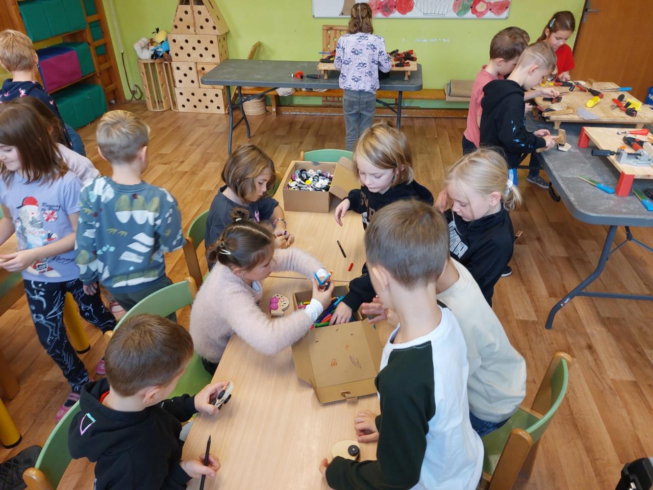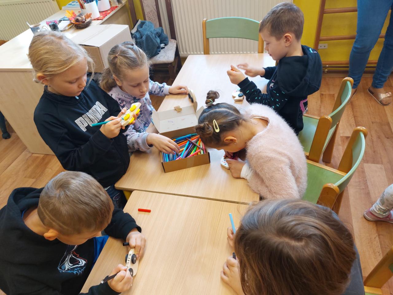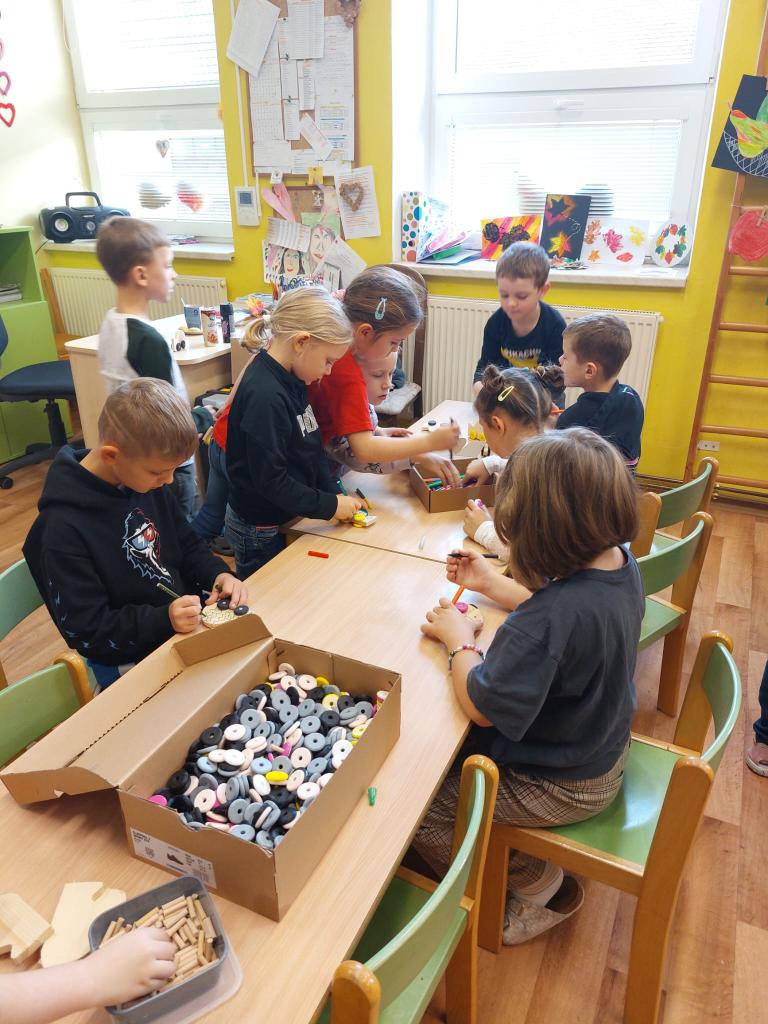 Naši nejmenší zkusili krásnou práci se dřevem.